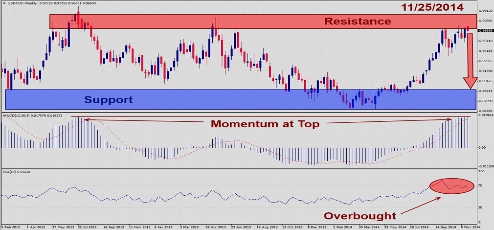 Should price action for the USDCHF breakdown below 0.9650 the following trade set-up is recommended: